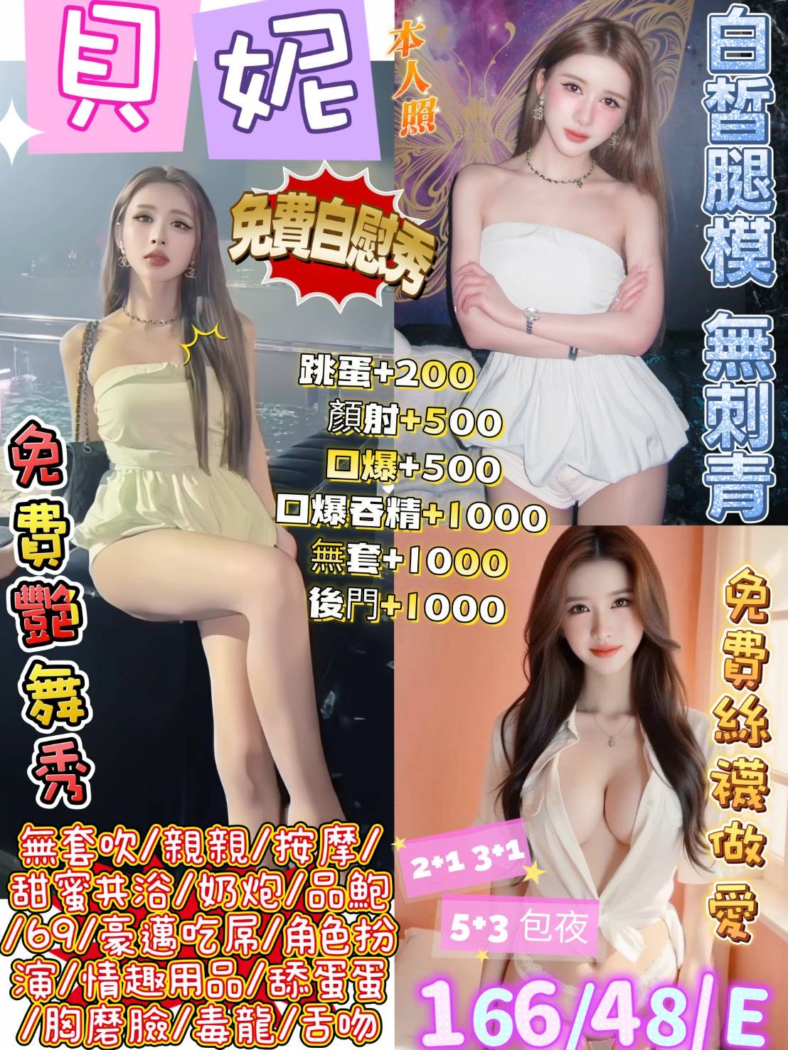 👍項目:無套吹/甜蜜共浴/舒壓按摩/胸推/屁推/69/品鮑/奶炮/親親/舔蛋/深喉嚨/角色扮演/舌吻