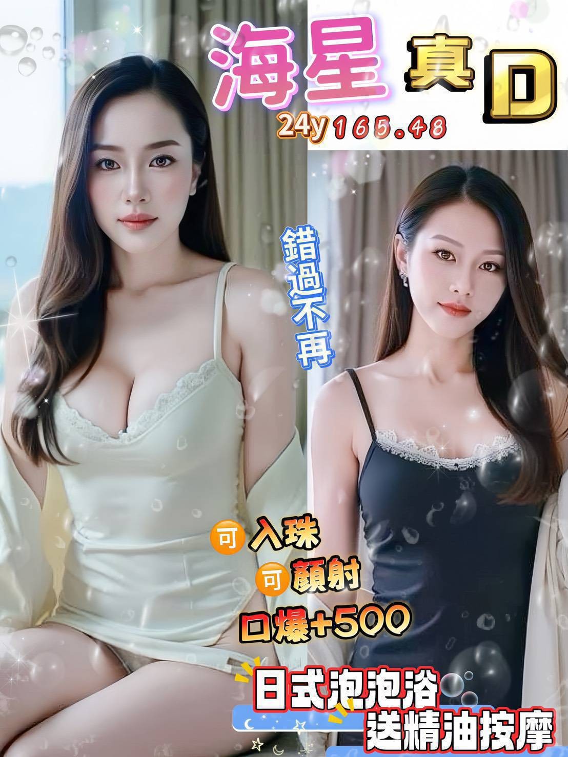 ✅無套吹✅帶套做✅甜蜜共浴✅品鮑✅小親親✅胸推✅屁推✅奶炮✅事後按摩✅雙飛